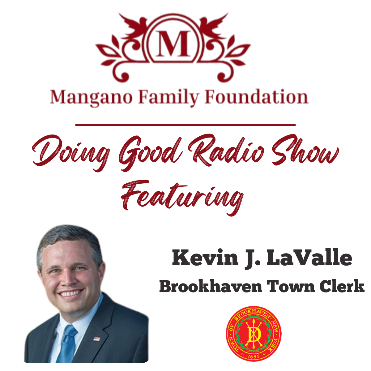 Coming up on the next episode of the Mangano Family Foundation’s Doing Good radio show, Sal Mangano will be sitting down with Brookhaven Town Clerk Kevin LaValle to talk about the path that led him to public service. Kevin’s story really starts right here at home, from his days in the Middle Country School District