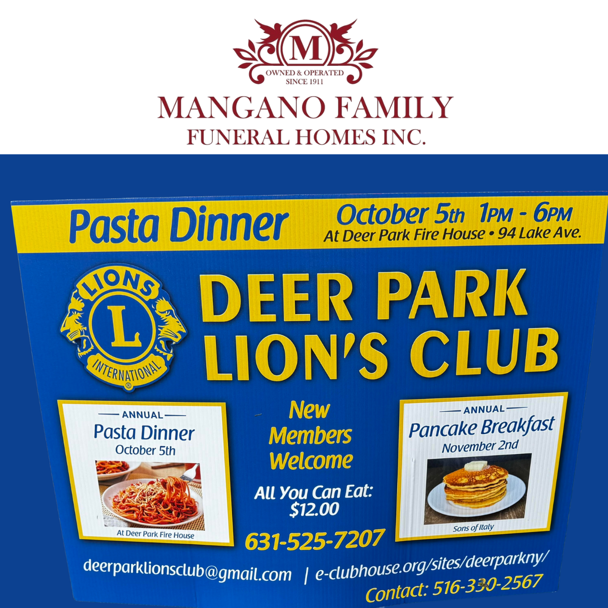 Join us for a Good Cause. Sal Mangano, Founder of the Mangano Family Foundation and President of Mangano Family Funeral Homes, is a proud member of the Deer Park Lions Club, and he's inviting you