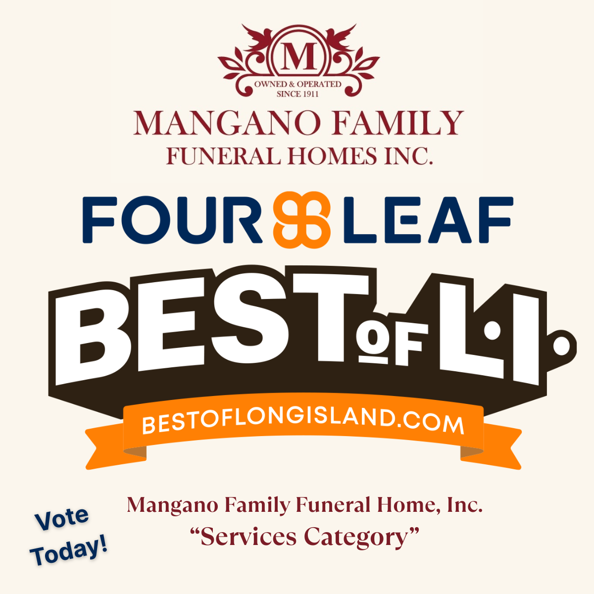 Vote Mangano Family Funeral Homes for “Best Funeral Home” – FourLeaf Best of Long Island 2026