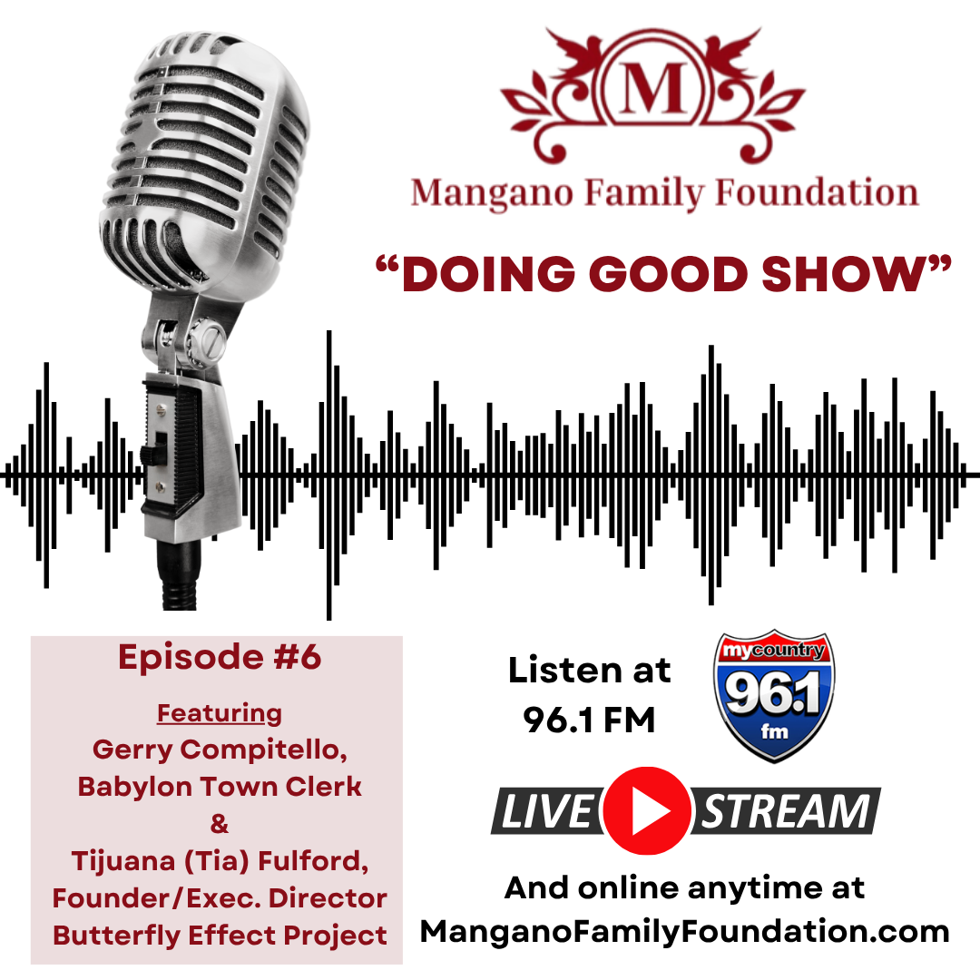In Episode 6 of the Mangano Family Foundation’s Doing Good radio show, our Founder Sal Mangano sits down with two guests, Babylon Town Clerk Gerry Compitello and Tia Fulford, Founder and Executive Director of The